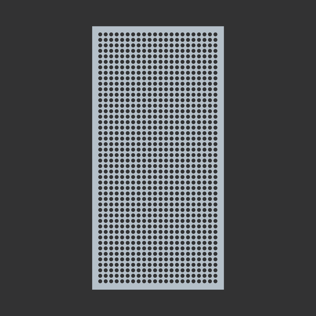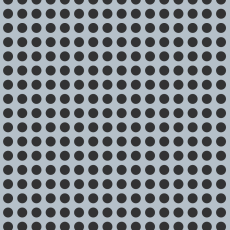 Geometric round pattern. General purpose perforated metal sheet with larger 34.8mm holes with a 50mm staggered pitch. It has a variety of functional uses: Seive, vertical screening, grill, infill panels and is also a great decorative screen.