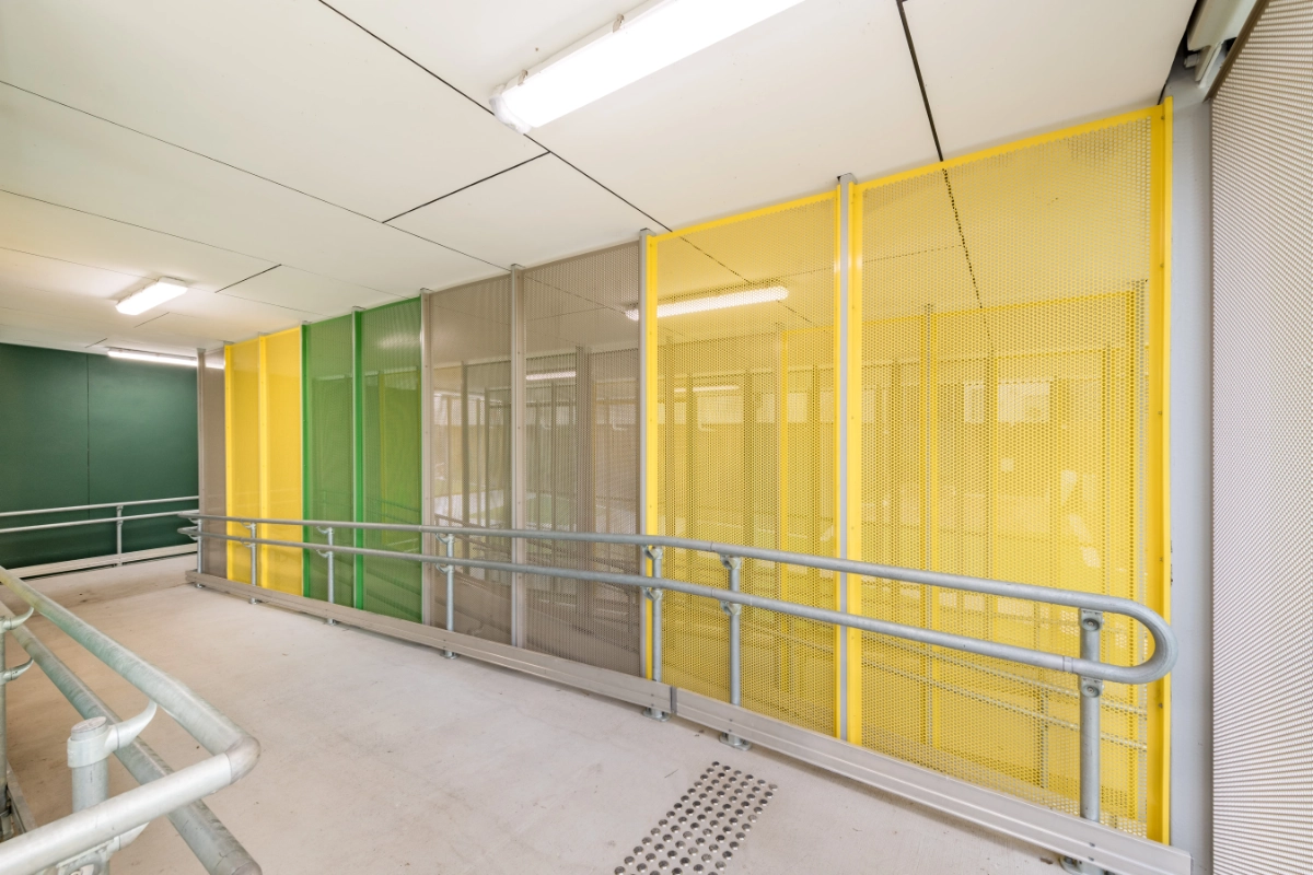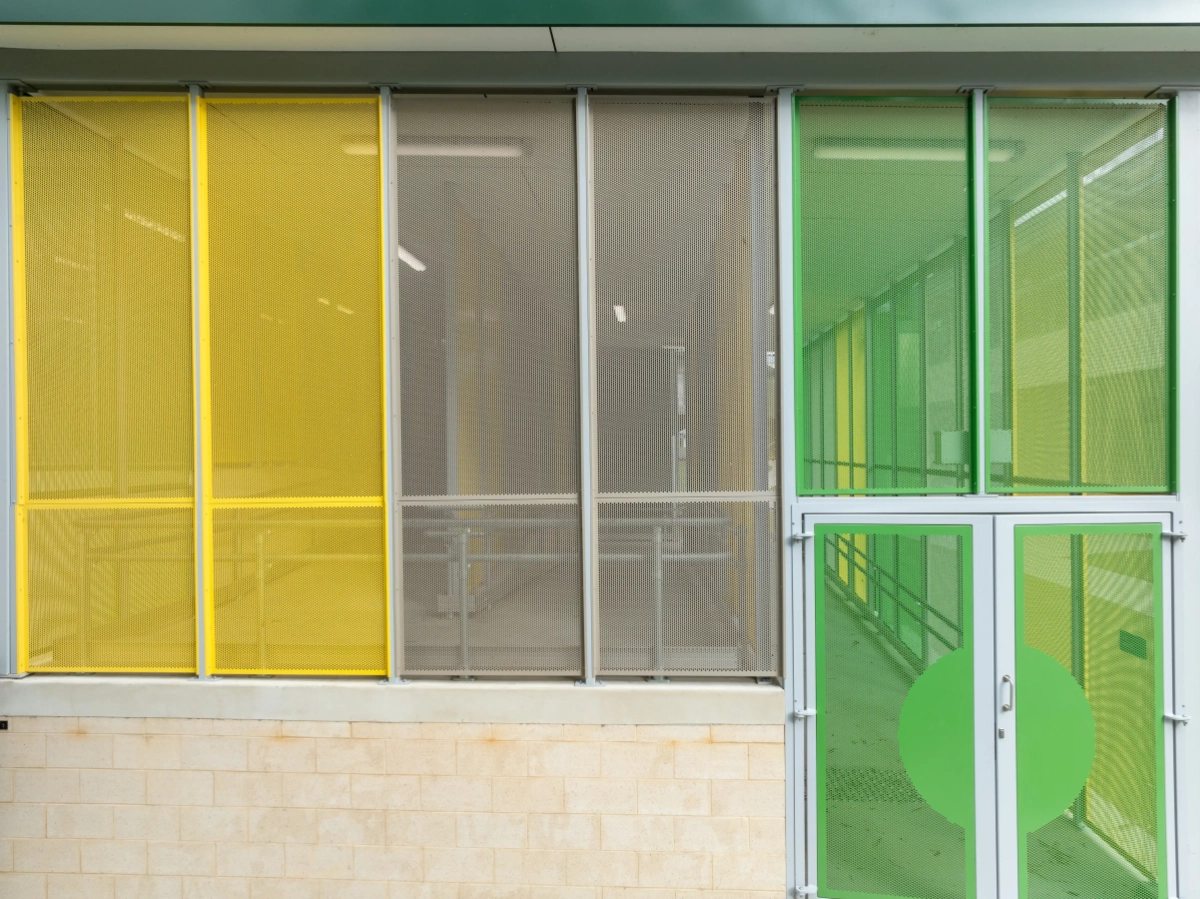 Powdercoated aluminium screens help deliver the architects vision for the colours being a key feature of the new building.